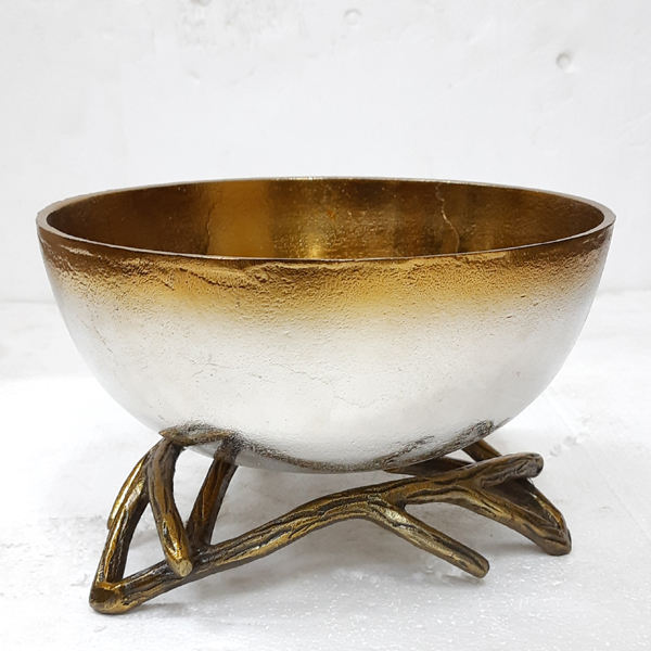 Set of 2 Aluminum Metal Leaf Shape Gold Plated Fancy Ceramic Free Bowl Modern Serving Fruits Snacks Modern Sustainable Bowl