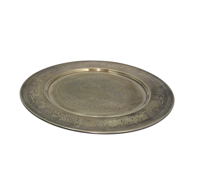 Set of 2 Aluminum Round Plate With Etching Silver Colour Large Size Serving Dish for Wedding & Hotels Decoration