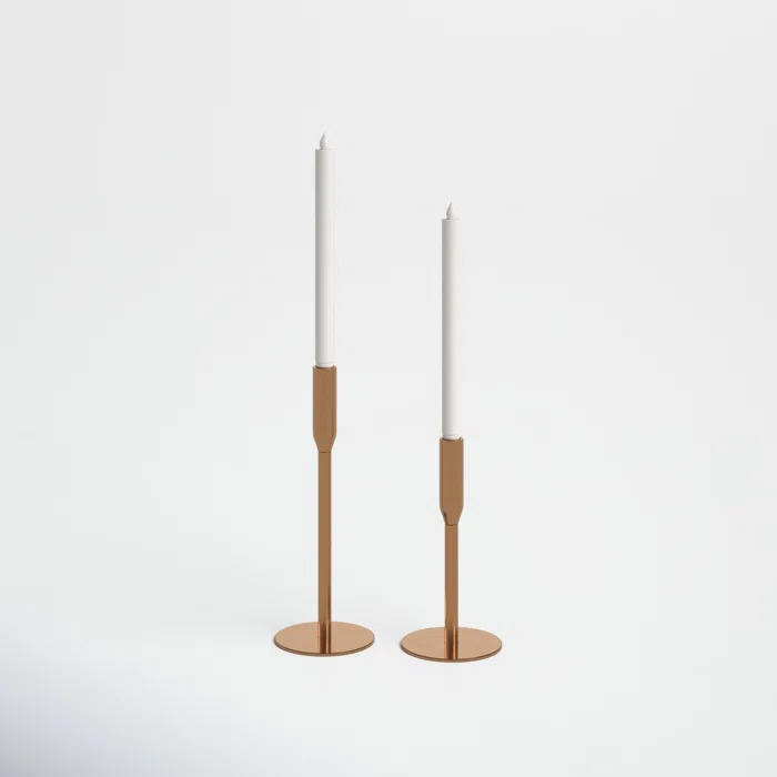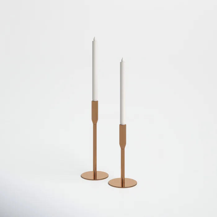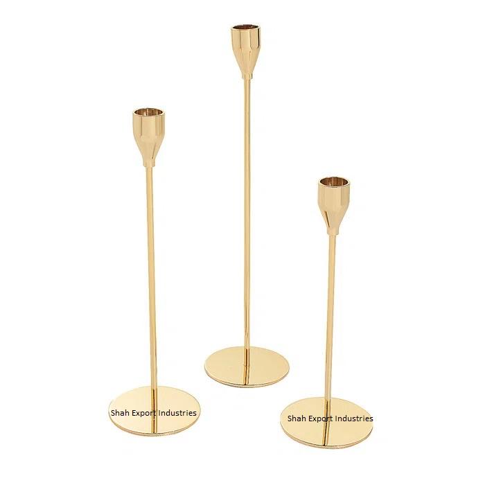 Set of 2 Antique Gold Metal Taper Candle Holder for Home & Wedding Party Tabletop Lighting Decor Candle Taper