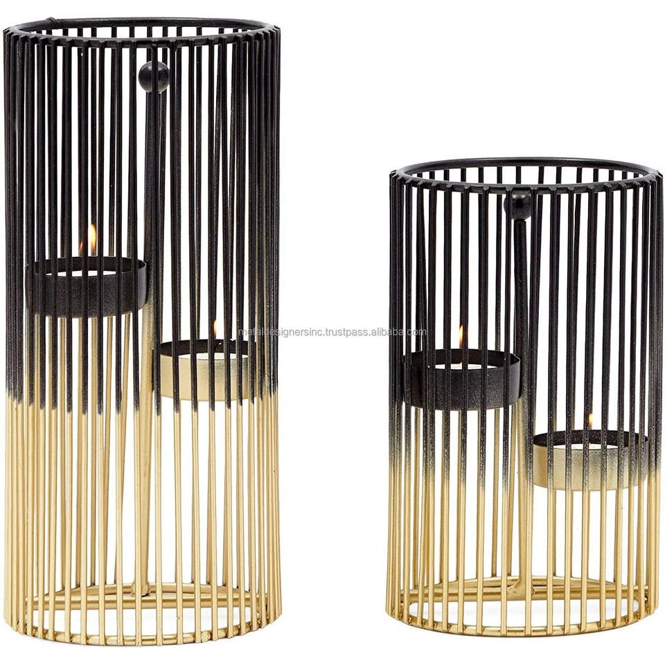 Product name:Set of 2 Black and Gold Geometric Candle Holders