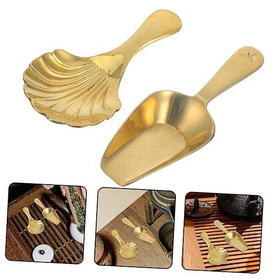 Set of 2 Brass Serving Spoon With Designer Handle Golden Color Tea Spoons for Kitchenware Tabletop Dessert & Soup Spoon