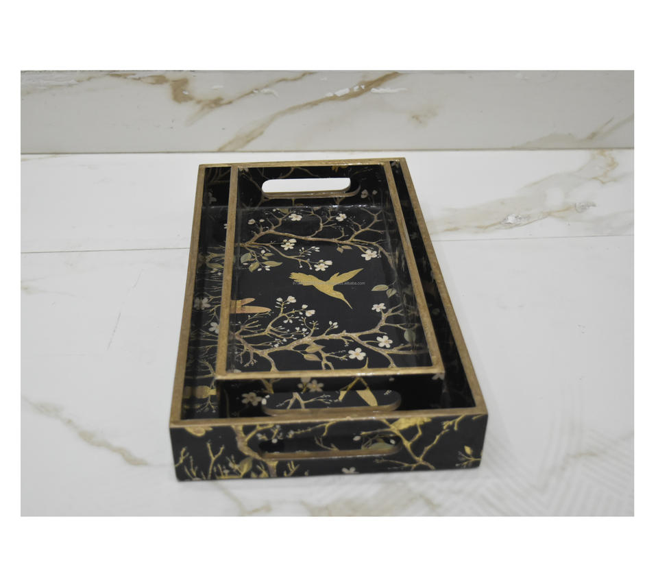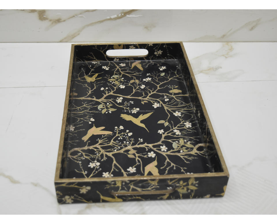 Set of 2 Custom Wood MDF Serving Trays with Handle Restaurant Hotel Breakfast Supplies Enamel Wooden Tray Direct Manufacturer