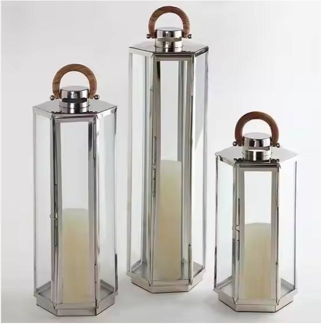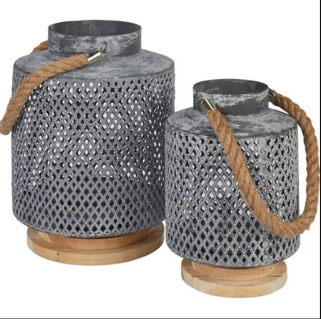 Set of 2 Eaching Design Antique Vintage Moroccan Candle Lantern With Handle Home Decor
