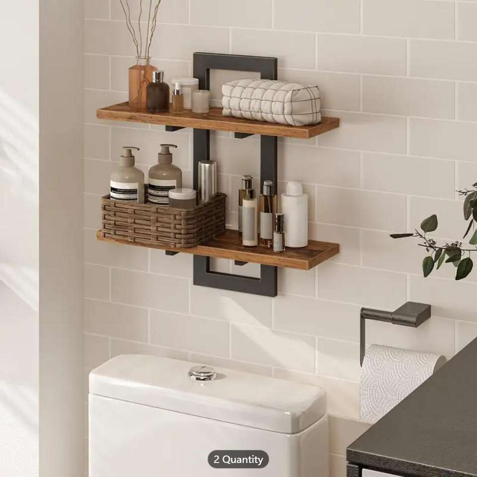 Set of 2 Floating Shelves 2 Tiers Wall-Mounted Storage for Bathroom Living Room Bedroom Kitchen Wardrobe Stylish Art Design