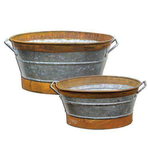 Set of 2 Galvanized Bucket Planter Custom Size Antique Finished Handmade Designer Garden Decorative Metal Serving Tray