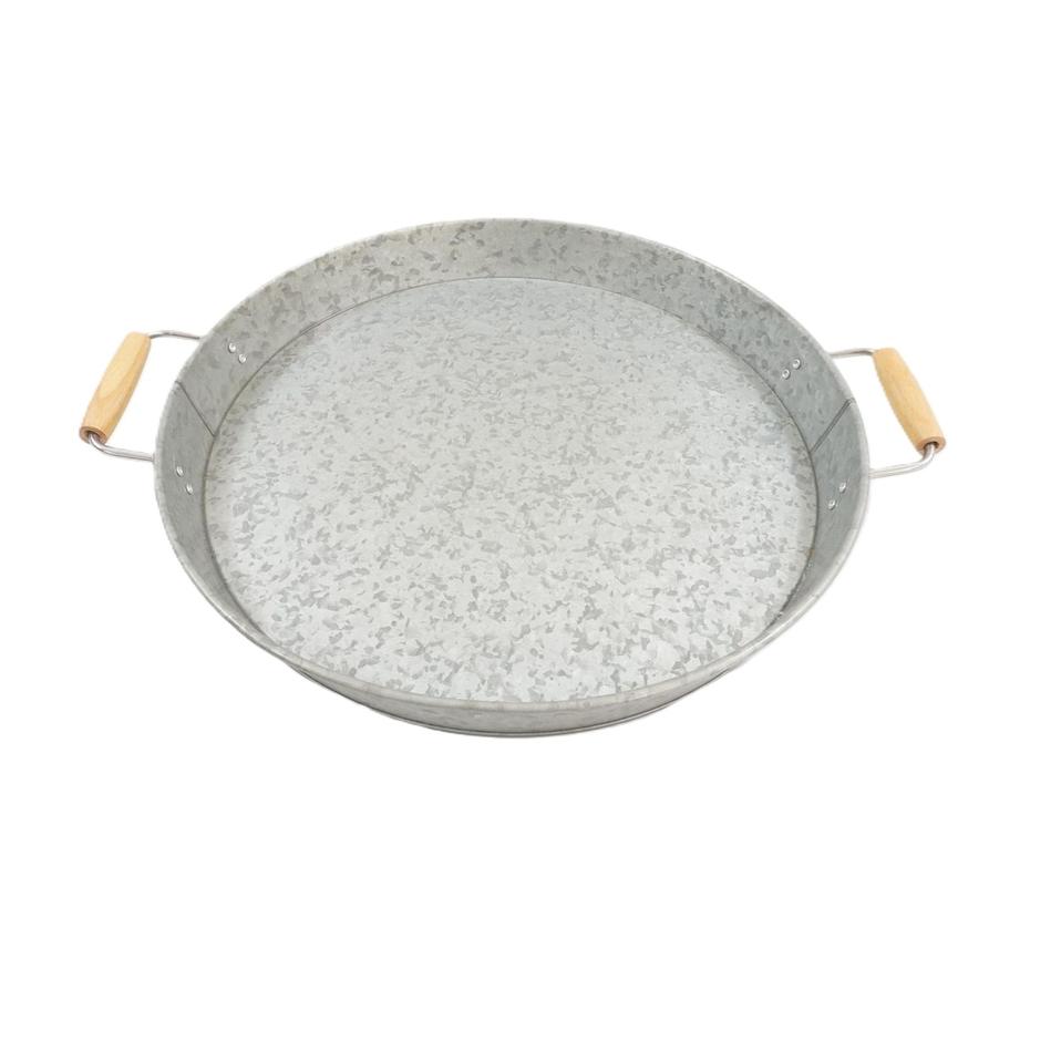 Set of 2 Galvanized Metal Serving Tray With Handle Oval Shape for Home & Restaurant Food & Drinks Serving Trays