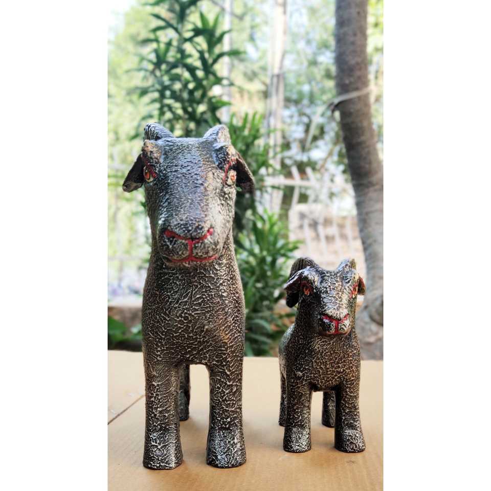 Set of 2 Hand-Carved Wooden Bighorn Sheep Sculptures Elegant Pair Model