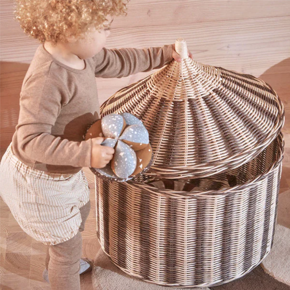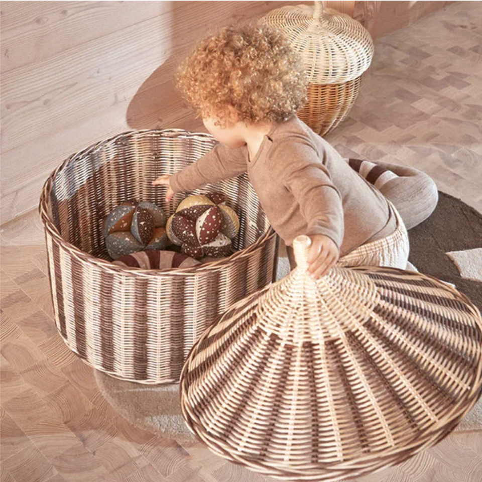 Set of 2 Hand Woven Rattan Wicker Baby Basket Circus House Decoration Bed Room Suitable for Kid to Store Clothes Toys Ornaments