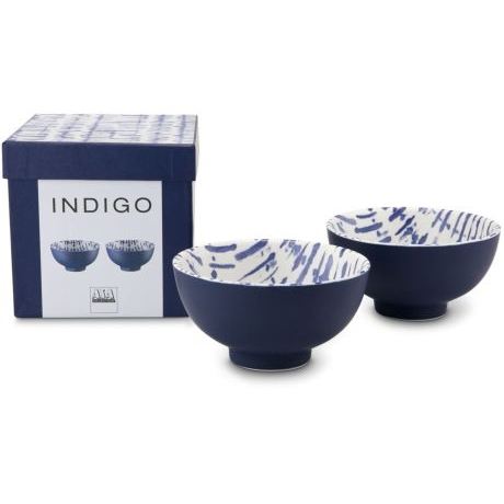 Set of 2 Handmade Japanese Style Bowls Eco-Friendly Glazed Ceramic Polished Custom Logo for Serving Indigo Color for Weddings