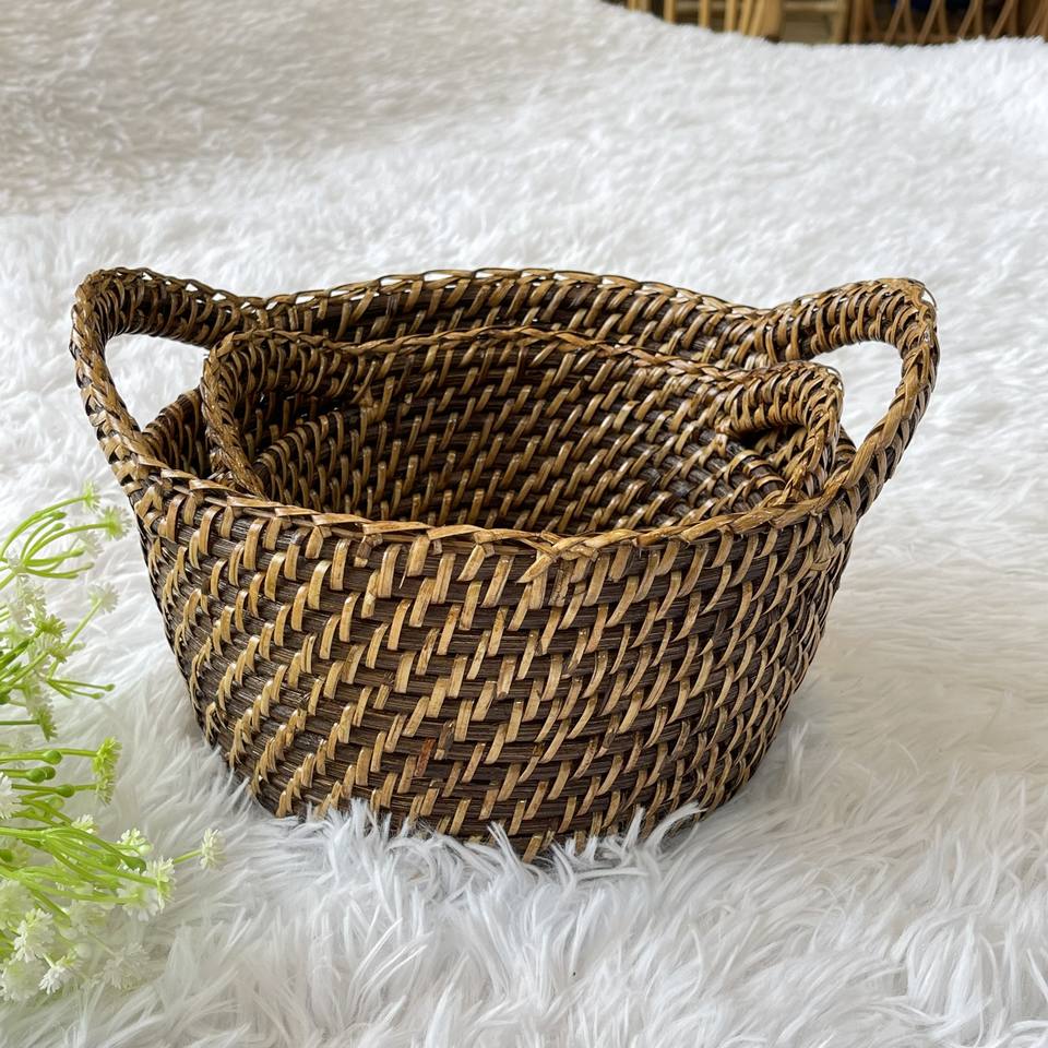 Set of 2 Handmade Rattan Baskets with Handle in Brown Color Vietnam's Traditional Storage Solution