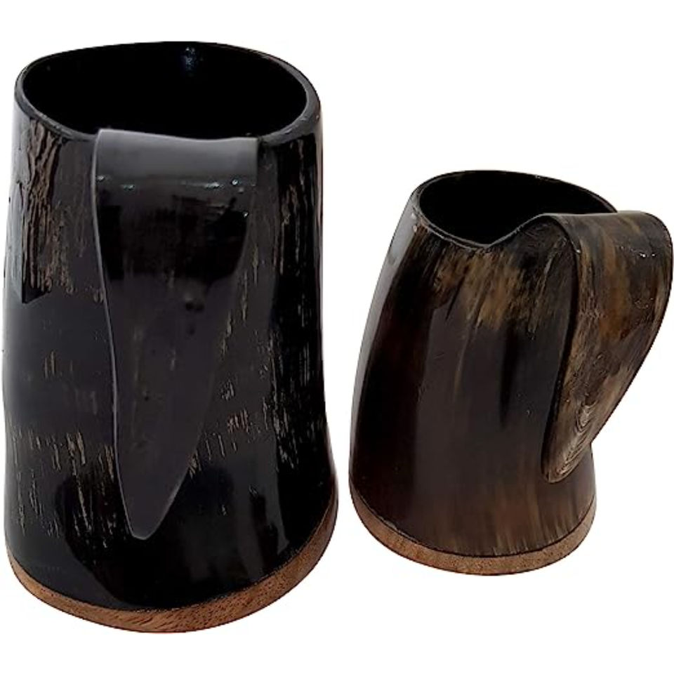Set of 2 Handmade Viking Beer Horn Mugs Different Sizes Antique Design Ideal for Home Bar and Wine Drinking Events