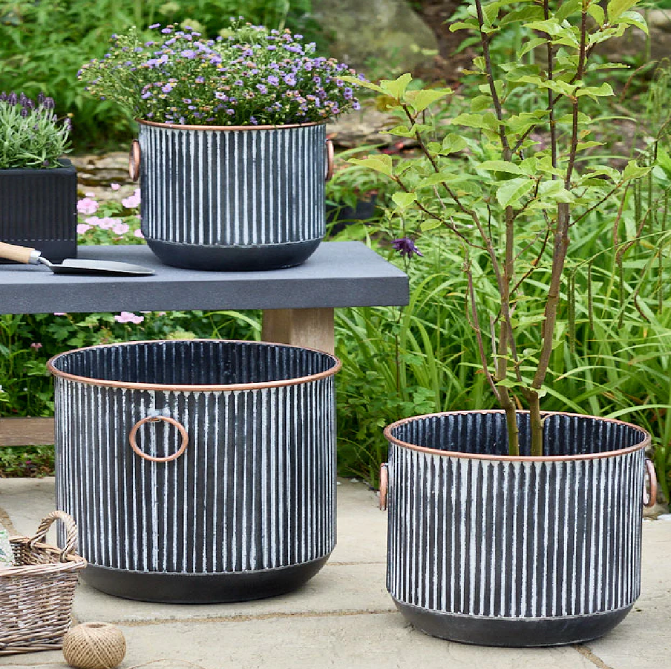 Set of 2 Iron Garden Tub Planters With Handles Round Design Small & Large Textured Decorative Nursery Home Use Cheap Price