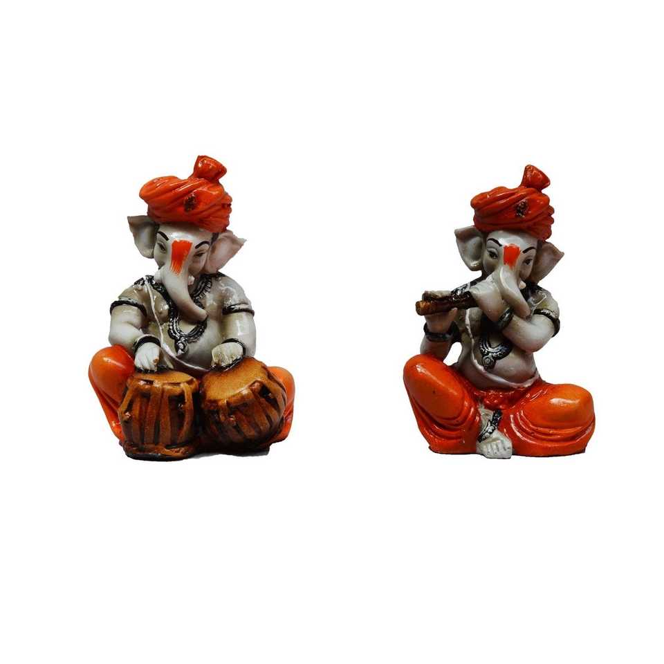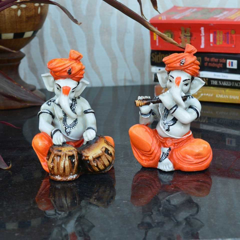 Set of 2 Lord Ganesha Statues playing Tabla and FlutePackage Content