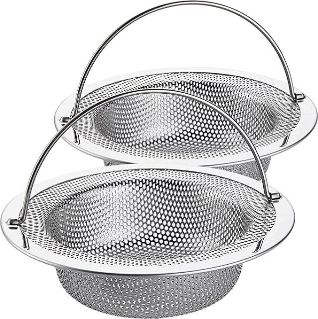 Set of 2 Metallic Colander Sink Strainers with Large Wide Rim Kitchen Accessories Products Sink Drainer Vegetables Rice Strainer