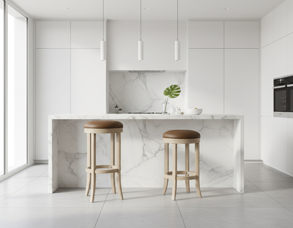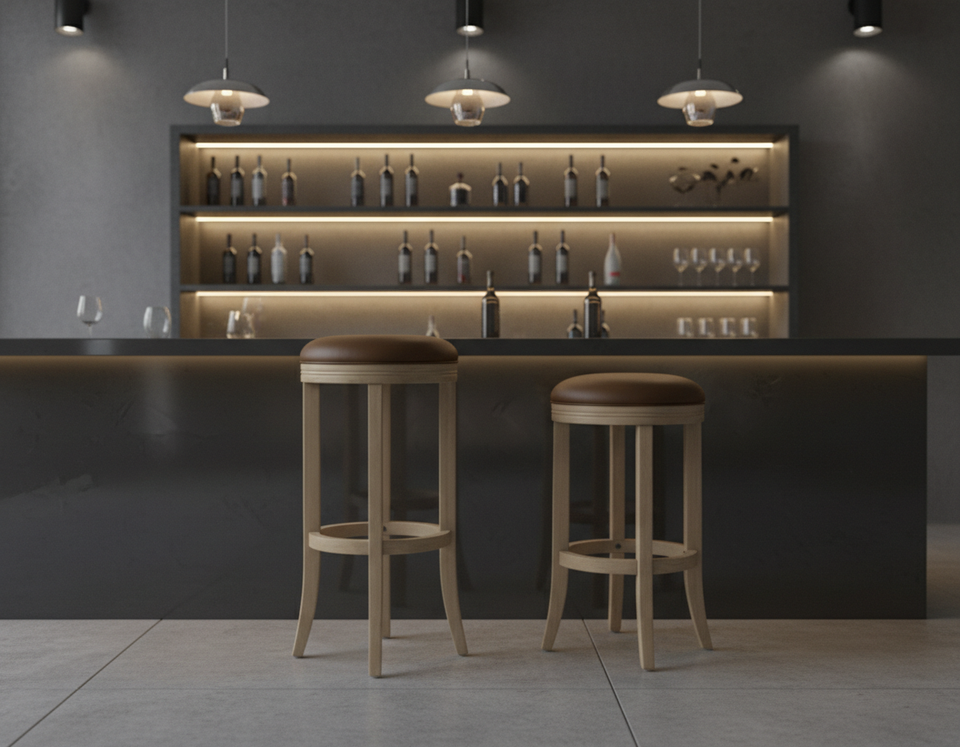 Set of 2 Modern Solid Wood Round PU Seat Bar Stools with Curved Legs