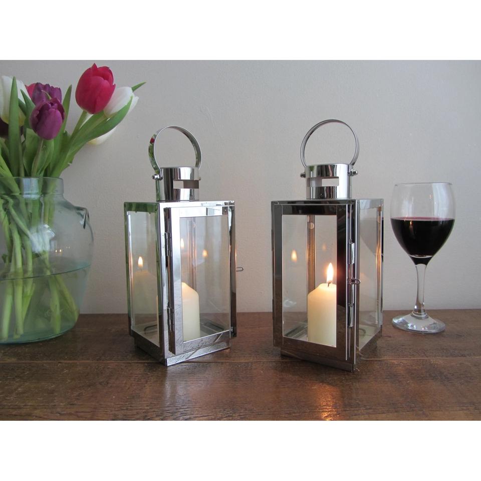 Set of 2 Polished Chrome Silver 25cm Candle Lanterns Tea Light Holders for Wedding Decorations Gorgeous Wedding Decorations