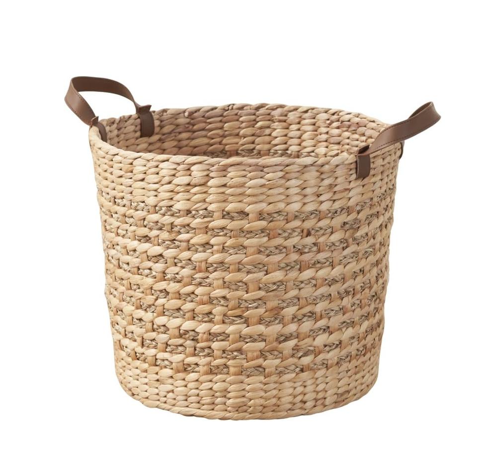 Set of 2 Rectangular Handwoven Water Hyacinth Storage Baskets with Handles Natural Wicker Organizer Bins Shelves Closet or Home