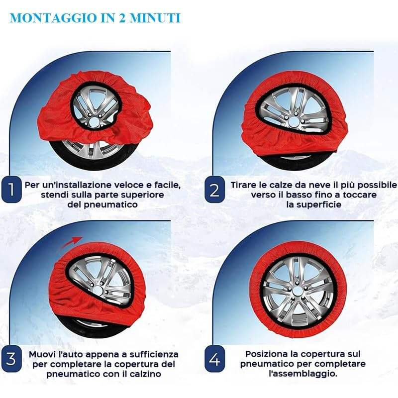 Set of 2 Red EN16666-1 Approved Snow Socks for Cars Non-Slip with Stable Grip on Snow/Ice