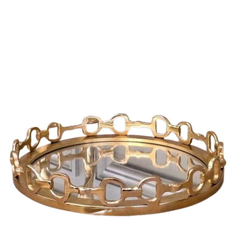 Set of 2 Round Shape Design Aluminum Metal Home Hotel Restaurant Creative Under Glazed Dishes & Plates Tray Rose Flower Printed