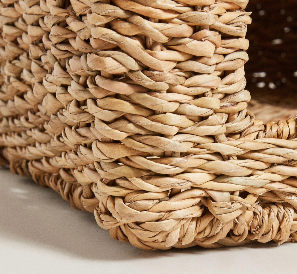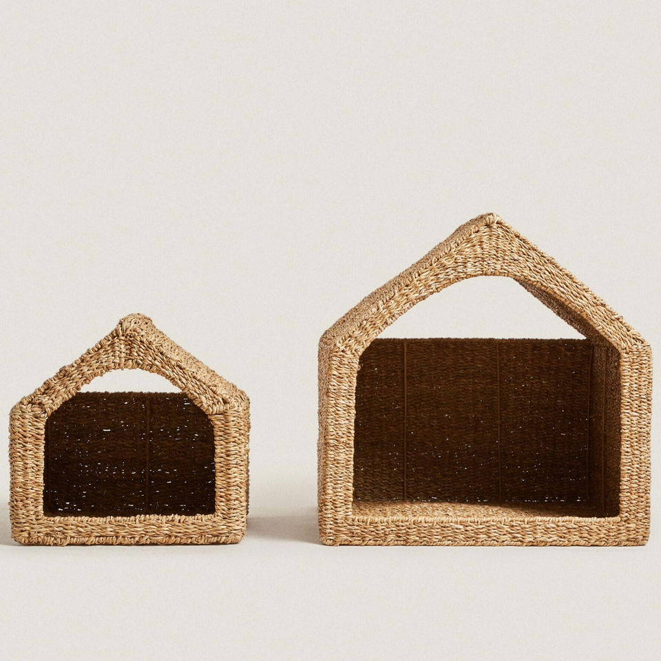 Set of 2 Seagrass Pet House Wicker Dog Cat Bed Indoor Small Animal Shelter Natural Woven Pet Furniture with Cushion