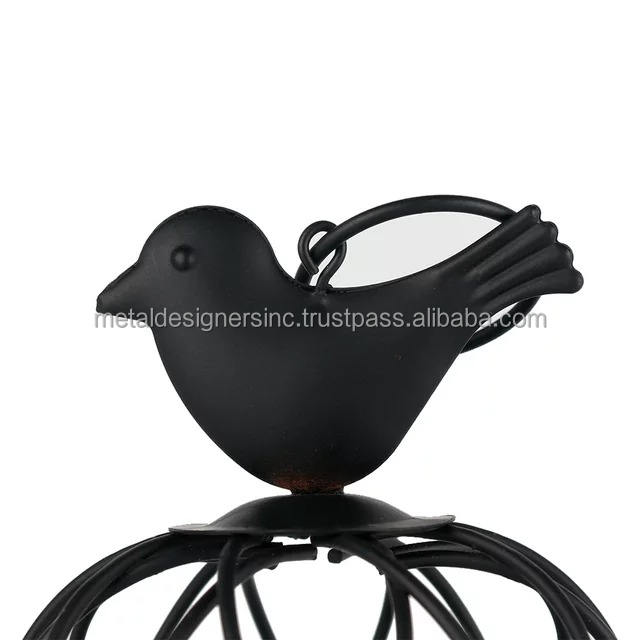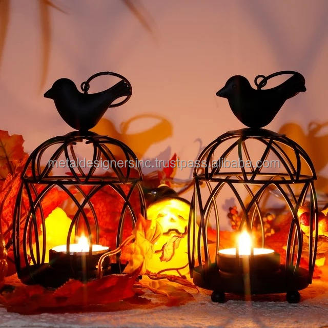 Set 2 Small Black Metal Outdoor Candleholders Home Decorative Birdcage Votive Tealight Candlestick Holders Elegant Bird Design
