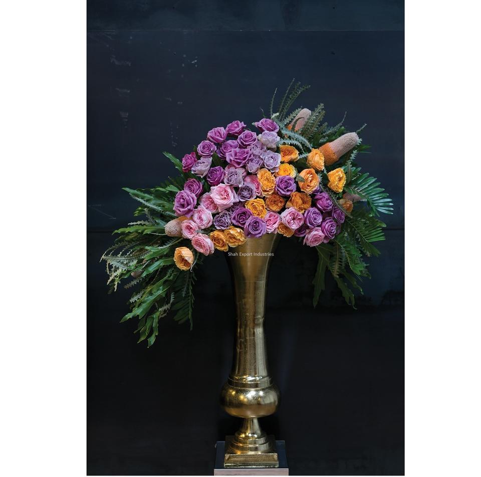 Set of 2 Solid Aluminum Golden Large Flower Vase With Square Base for Wedding Ceremony Floor Decoration Metal Vase