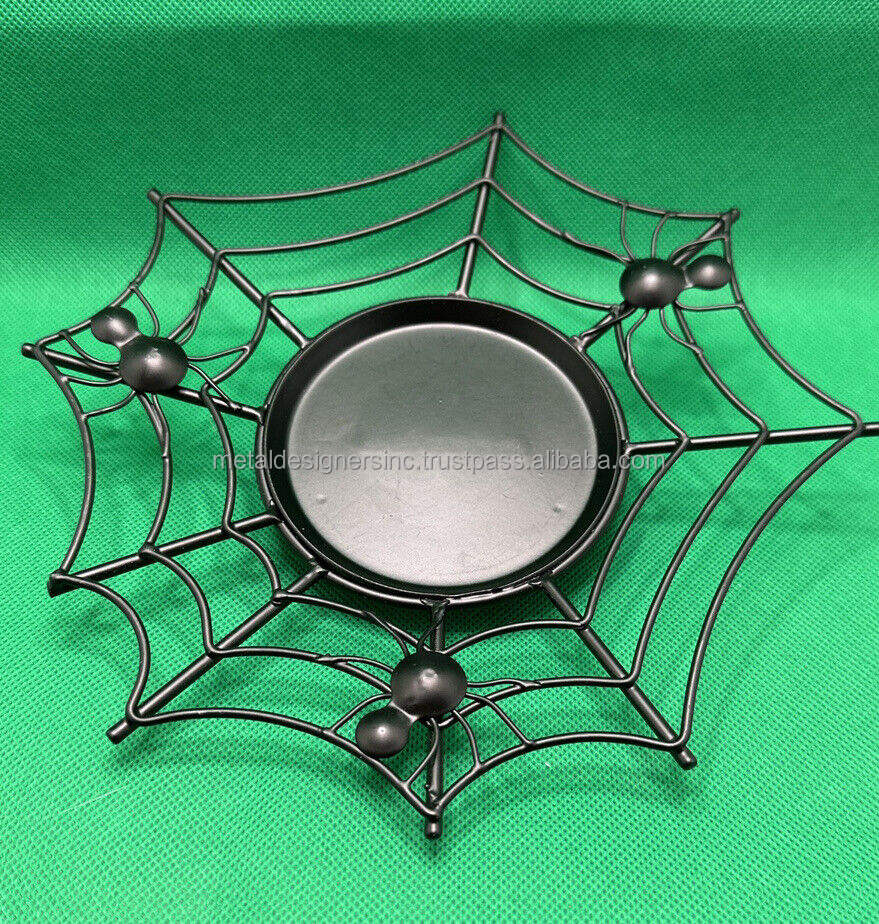 Set of 2 Spooky Halloween Spider Web Iron Candle Holders Black Taper Candle Stand for Home Decor and Office Table Centerpiece