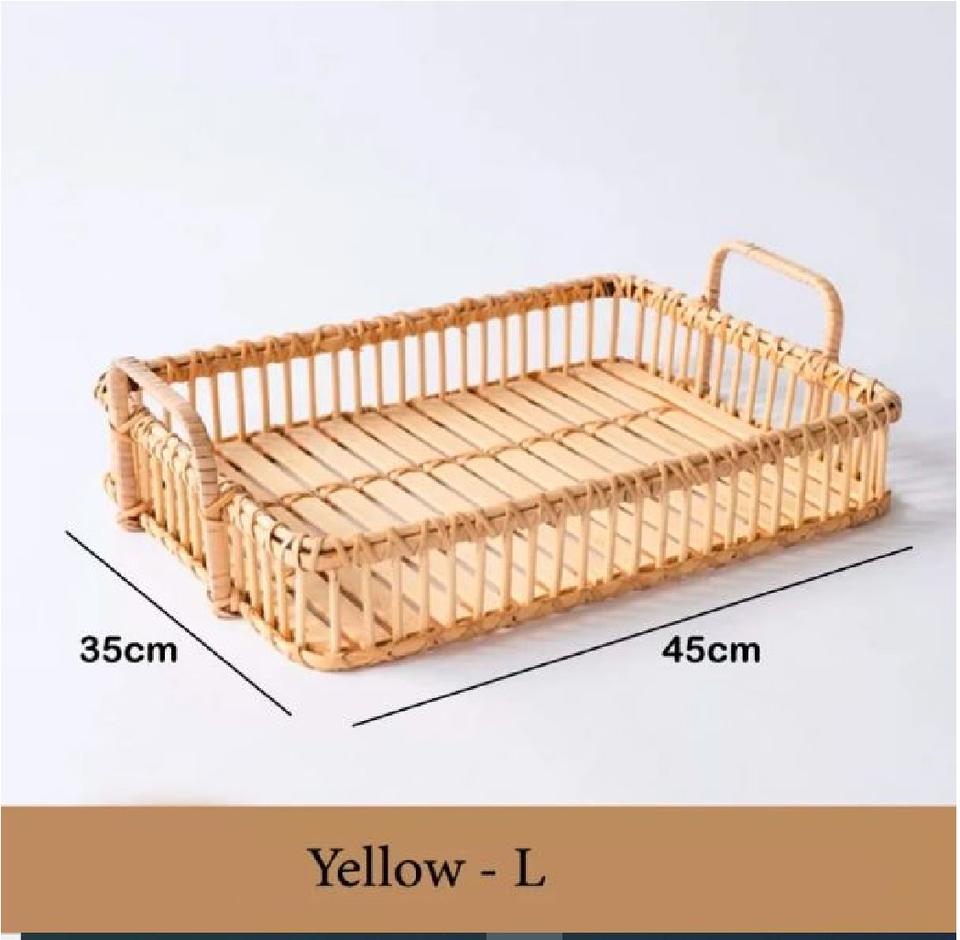 Set of 2 Vintage Design Rattan Food Tray Brown Color Shade Woven Work Food Serving Tray Round Shape Eid Decoration Accessories