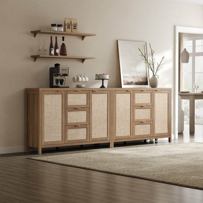 Set of 2 W Rattan Sideboards 3-Drawer and 2-Door with Adjustable Shelves