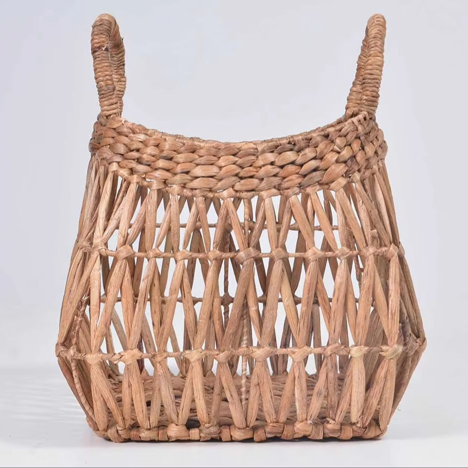 Set of 2 Water Hyacinth Baskets with Loosely Woven Handles Handmade Storage Basket Wholesale eco-friendly Made in Vietnam