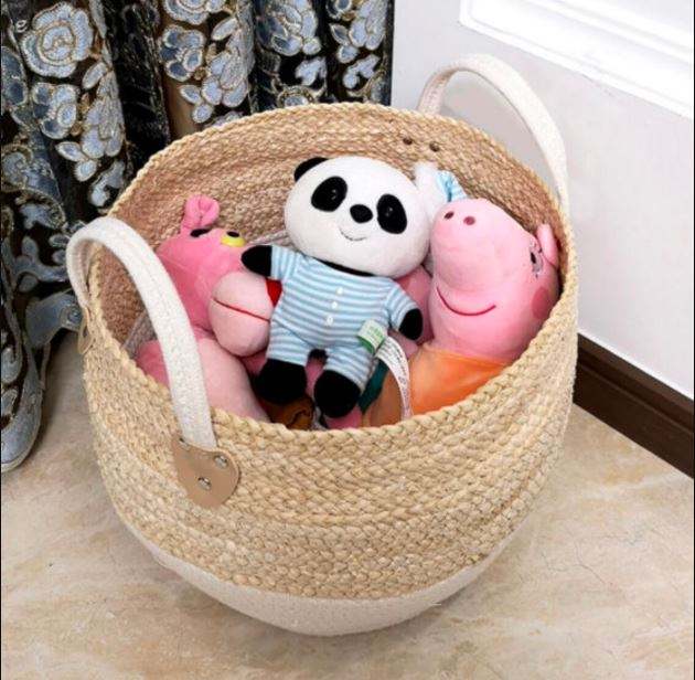 Set of 2 Wood Rattan Storage Baskets Natural Finished Perfect For Home And Kitchenware Fruit Vegetable Organization With Handle
