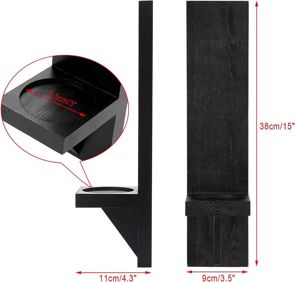 Set of 2 Wooden Wall Candle Sconces Rustic Wall Mount Wooden Pillar Candle Sconces Black Farmhouse Wall Candle Sconces Hanging