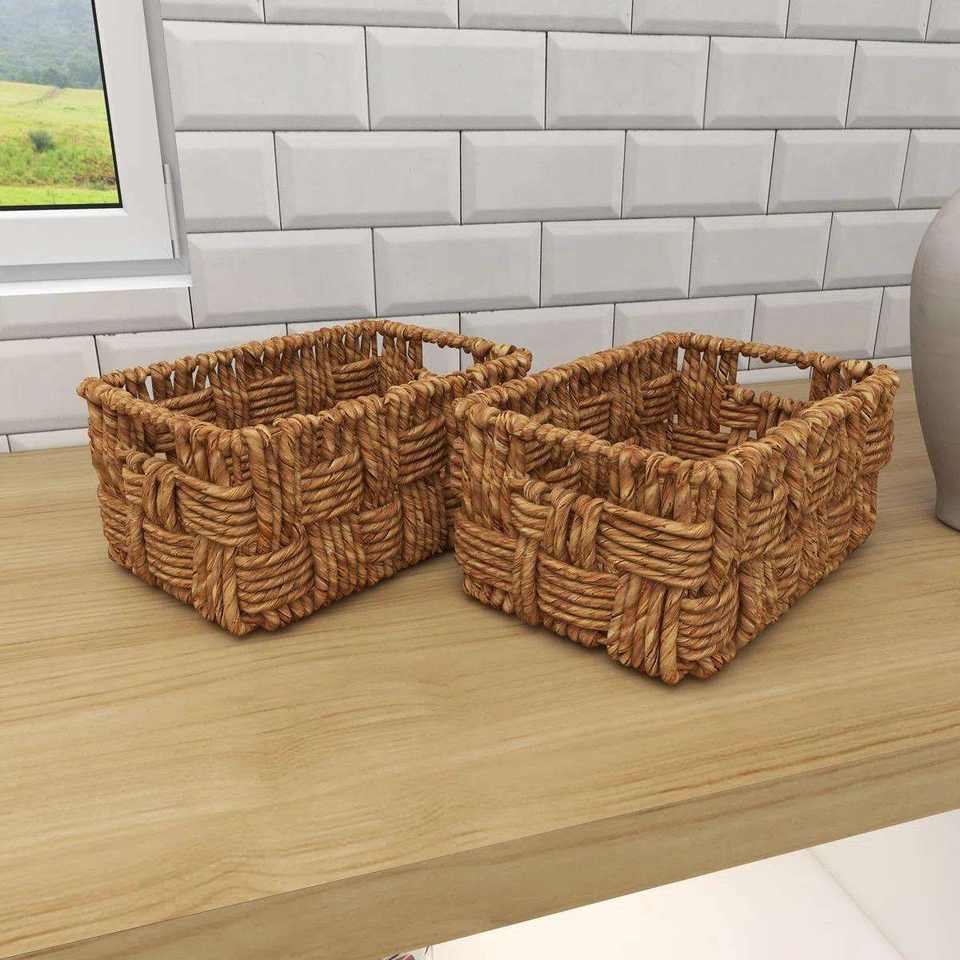 Set of 2 checkered handwoven Water Hyacinth baskets Handmade Storage Basket Wholesale eco-friendly Made by VgreenArt in Vietnam