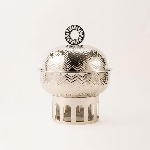 Elegant Gold Plated Chafing Dish Cooker with Stand ideal for buffet or banquet service.