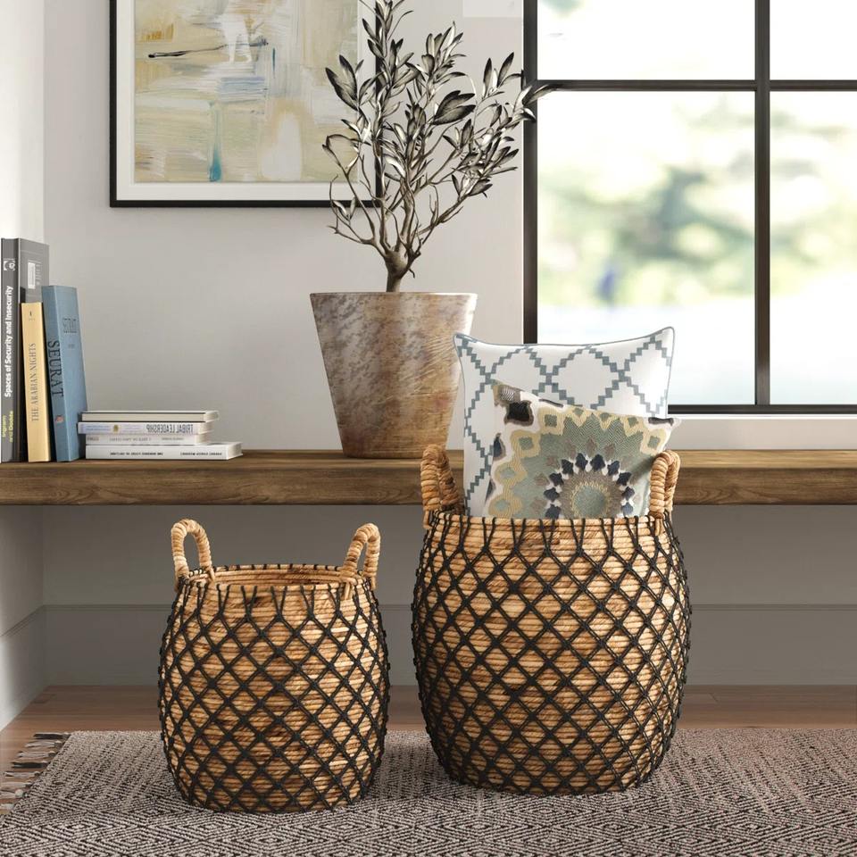 Set of 2 water hyacinth baskets with mesh covers Handmade Storage Basket Wholesale eco-friendly Made in Vietnam