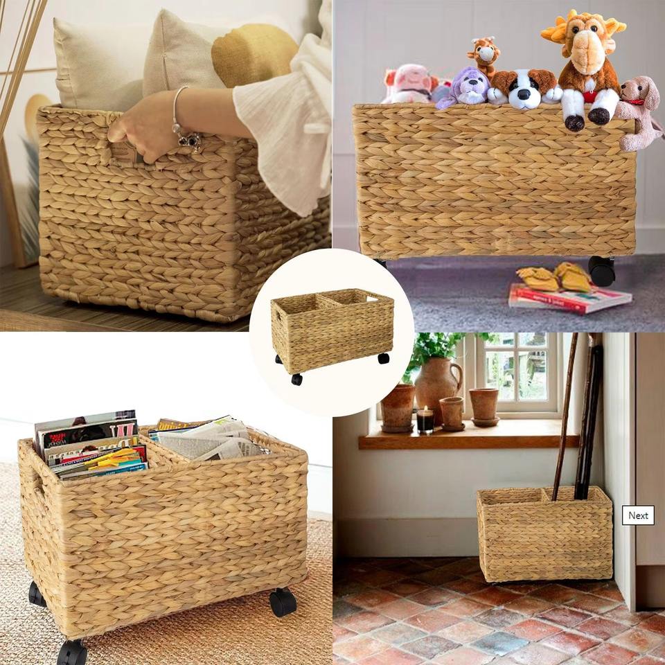 Set of 2 water hyacinth baskets with wheels Handmade Storage Basket Wholesale eco-friendly Made in Vietnam