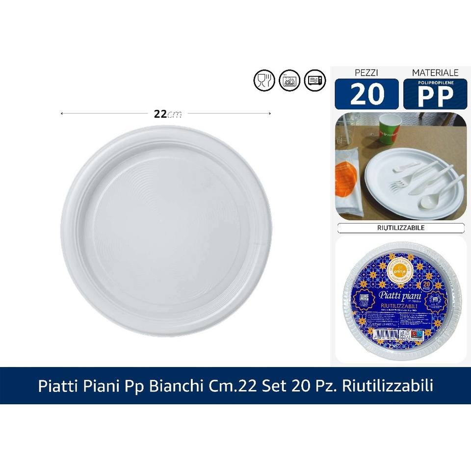 Set of 20 White PP Flat Plates 22cm Reusable Dishes & Plates