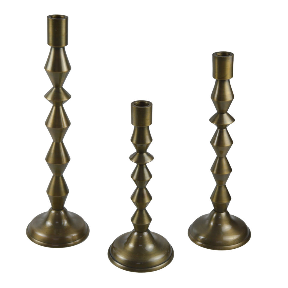 Set of 3 Aluminium Antique Brass Finish Candlestick Holder Home & Wedding Decor Handmade Candle Stand