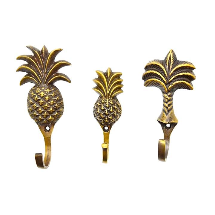 Set of 3 Antique Cast Brass Pineapple Tree Shape Hooks Racks Highest Selling Hat & Coat Hangers in Bulk Quantity Metal Material