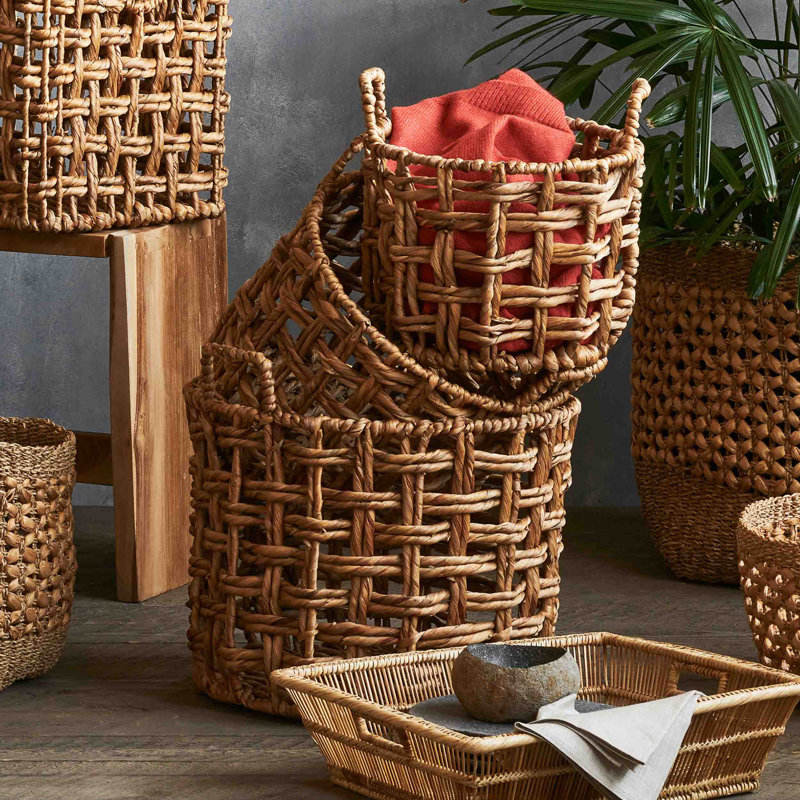 Set of 3 Bamboo Woven Baskets Home Decor Storage Box Collection