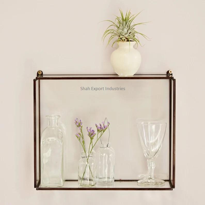 Set of 3 Black Wall Hanging Glass Shelf Box Rectangle Shelves Wall Mounted Display Racks for Home Wall Decoration