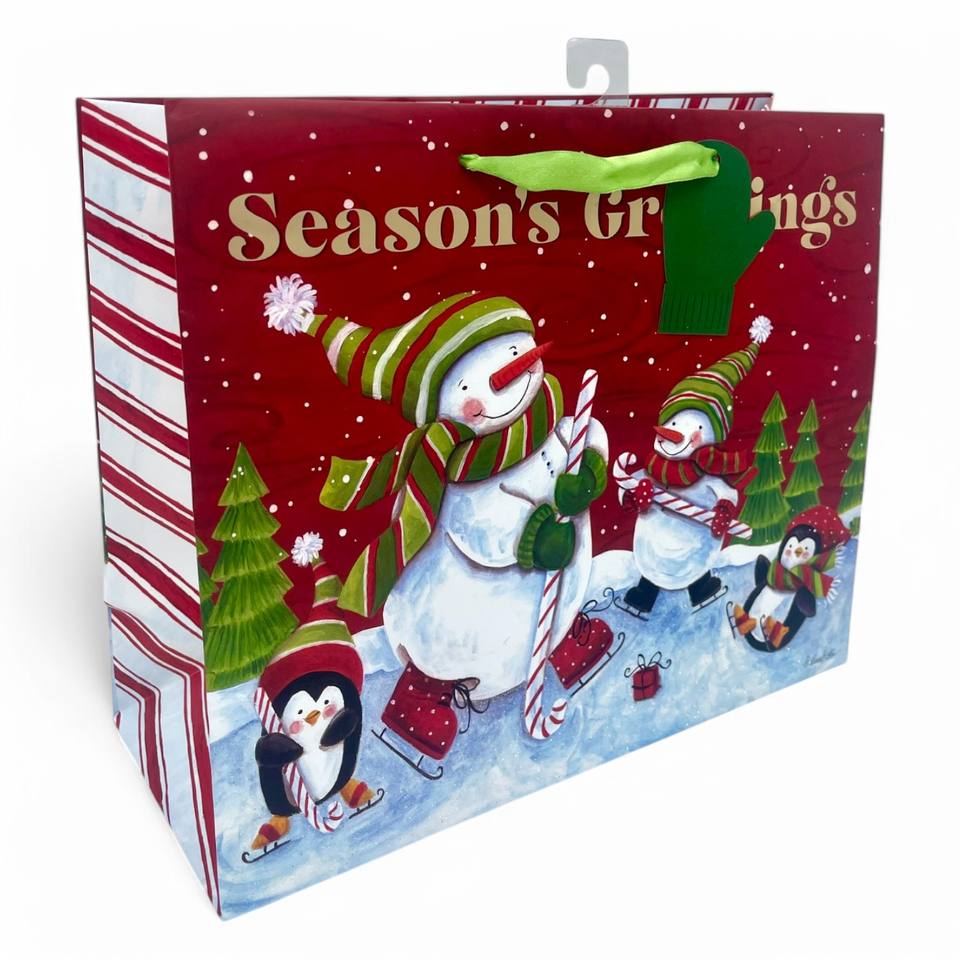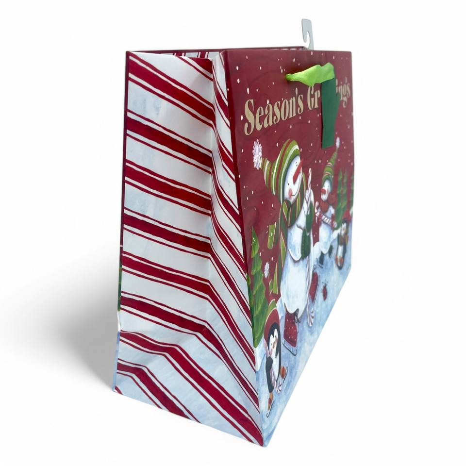 Handmade Eco-Friendly Classic Christmas Large Horizontal Coated Paper Recyclable Gift Bags Ribbon Glitter Foil Finishing