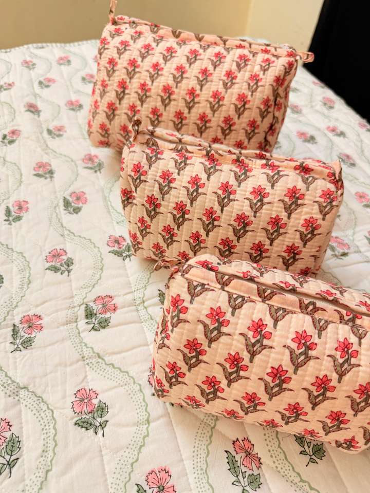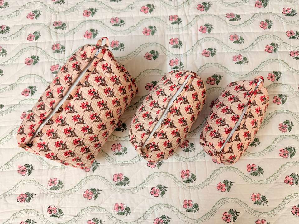 Set of 3 Cosmetic & Toiletry Storage Cotton Pouch / Cotton Quilted Travel Cases Pouches Perfect Valentine Day Gift