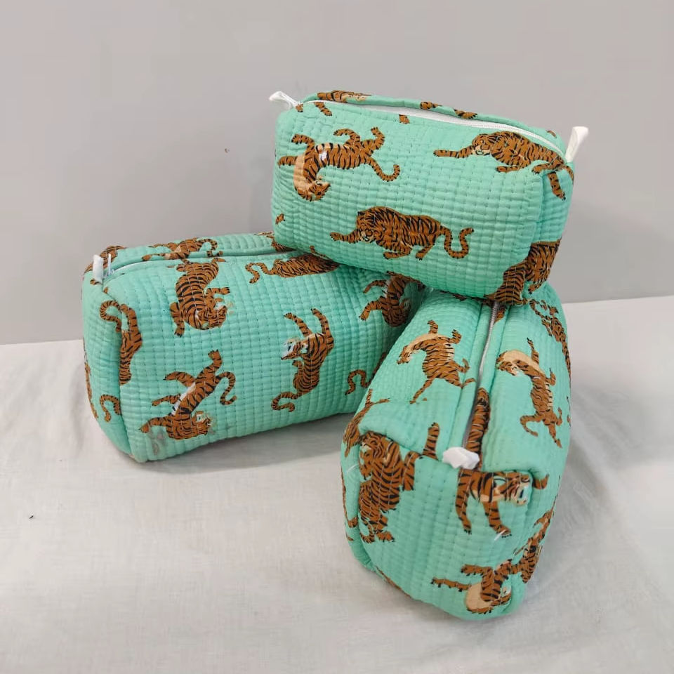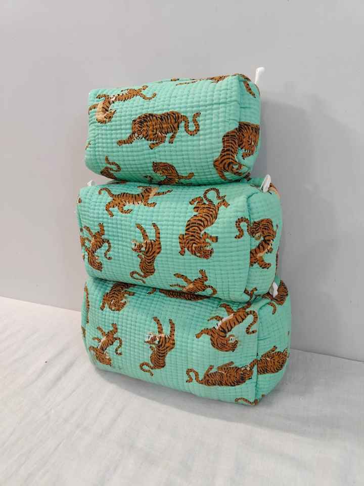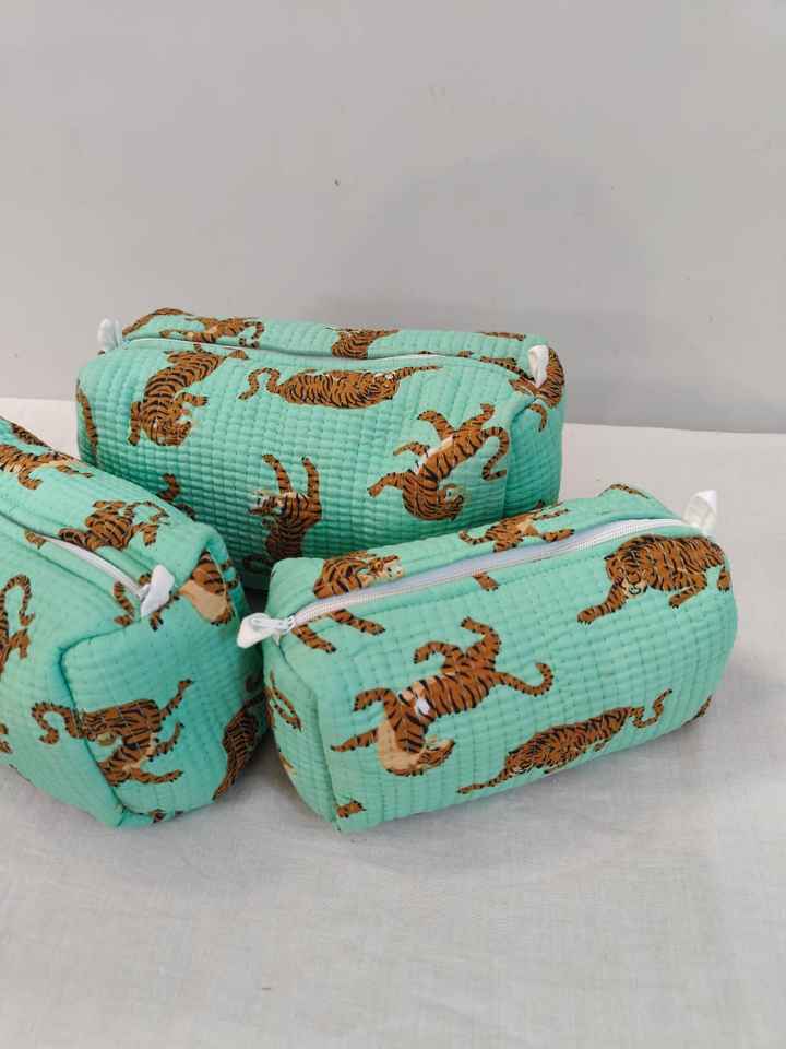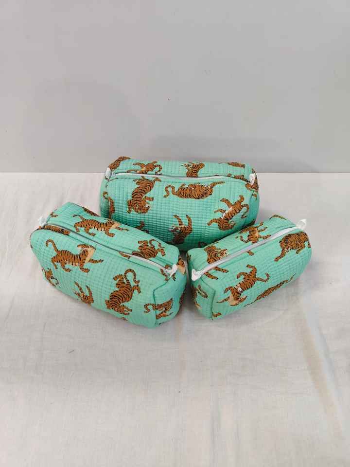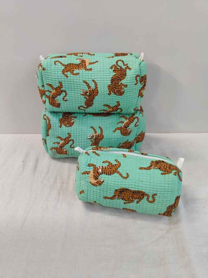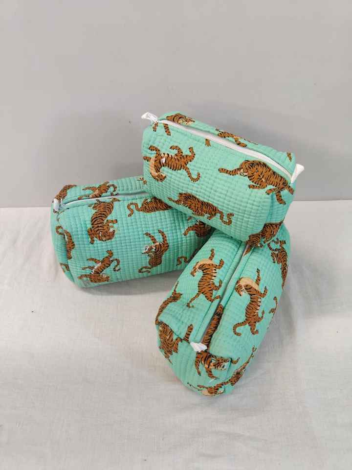 Set of 3 Cotton Quilted Leopard Print Makeup Bags with Zipper Closure Lightweight Travel & for Organizer From Rajasthan