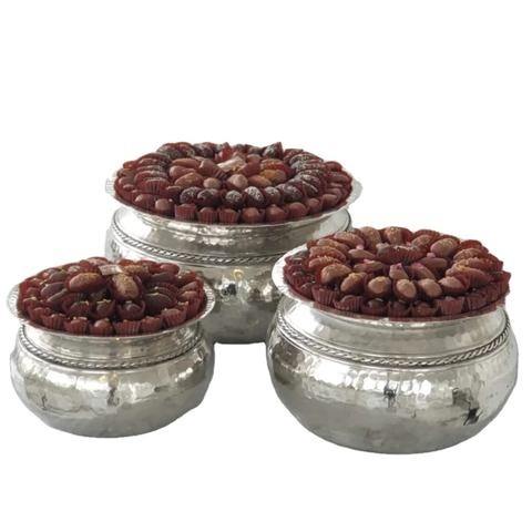 Set of 3 Custom Shape Metal Chocolate Serving Bowl Classic Design Table Decor Dates Sweets Chocolate Serving Bowl
