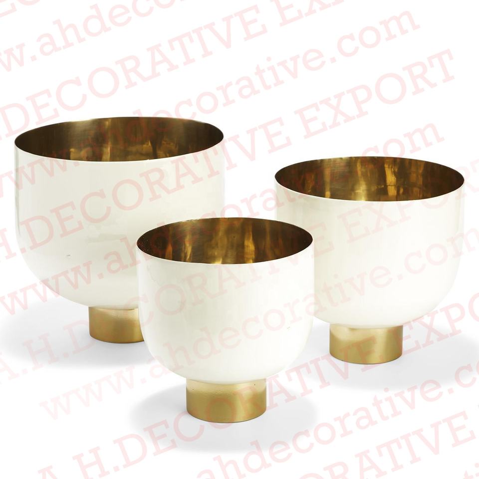 Set of 3 Decorative Aluminum White Lacquer Bowls With Inner Gold Finished for Wedding Decoration New Pedestal Bowl