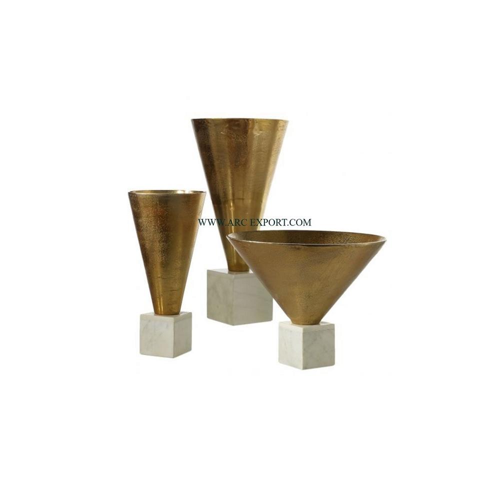 Set of 3 Decorative Sculpture With Marble Base Different Shape Creative Art HandmadeGold Color Object Top Quality Sculpture