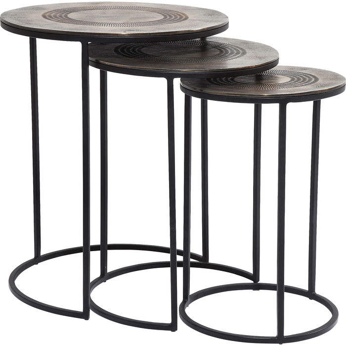 Set of 3 End & Side Table Minimalist Living Room Furniture Coffee Table Set Antique Gold Metal Nesting Accent Tables