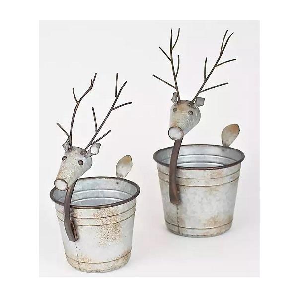 Galvanized Flower Pot Reindeer Planter Pot Planter for Home Garden Decoration Set of 3 Festival Planter Christmas Decoration