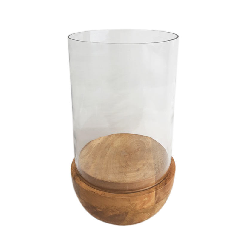 Set of 3 Glass & Mango Wood Candle Pillar Holder Natural Colour Medium Size Luxury Design Candle Holder for Hotels Decoration